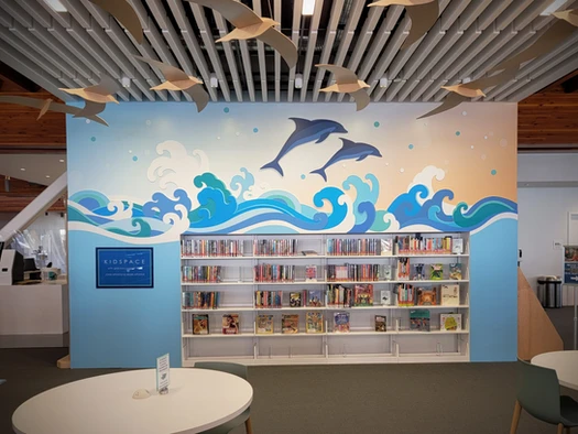 Mixed media dimensional wall graphic made from adhesive vinyl, PVC panels and a acrylic plaque.